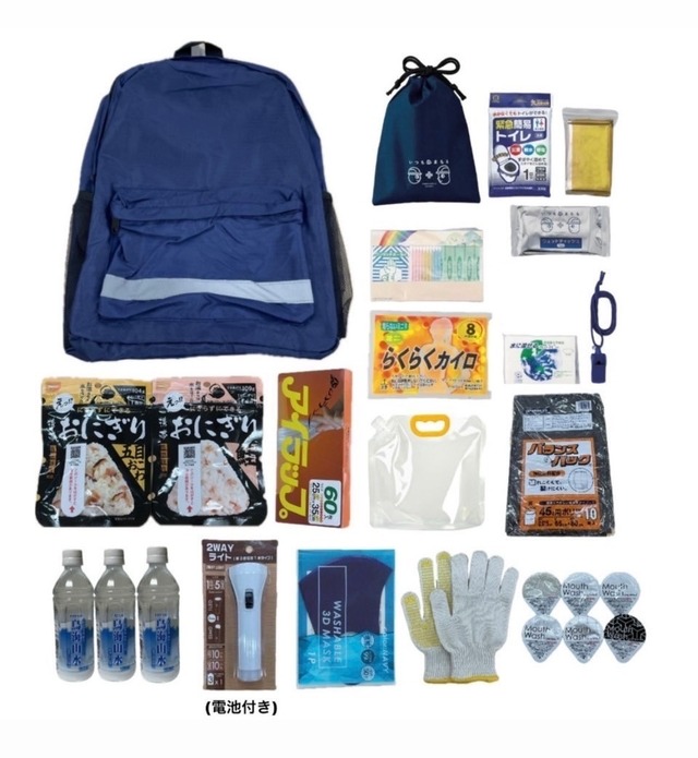 【緊急避難セット】安心のコンパクトサイズ - 高齢者や子供にも優しい軽量設計 この緊急避難セットは、緊急時に命を守るための必需品を厳選し、高齢者や子供でも持ち運びやすい軽量設計のリュックにまとめました。 基本防災20点セットと比べ、保存水や食料を省いたことで、必要最低限のアイテムをコンパクトにパッケージング。避難時に必要なアイテムを手軽に持ち出せるように選別しました。 また、保存水や食料の備えはしている方にもおすすめの商品です! 【商品内容】 リュックサック 2way型懐中電灯 単三乾電池(2本) アイラップ(25cm×15cm, 30枚) 給水袋 ウエットティッシュ マスク 綿棒 ワンタッチ包帯 絆創膏 ミニカイロ アルミブランケット ホイッスル 水に流せるペーパー 緊急簡易トイレ マウスウォッシュ(6個)※水が貴重な中で、水入いらずで歯磨きの代わりになります 軍手 黒色ポリ袋(45L×10枚)※簡易トイレ等に便利です ーーーどう役立つの?ーーー 【身を守るアイテム】 ・2way型懐中電灯…照明(救助要請時)とランタン機能(暗闇時)で安心 ・ワンタッチ包帯…怪我の応急処置 ・絆創膏…小さな傷の手当てに ・ミニカイロ…寒冷地や冬の避難時に温かさを提供 ・アルミブランケット…寒さから身を守り、体温を保持 ・ホイッスル…助けを呼ぶために必須 ・軍手…作業や移動時に手を保護 【避難所での生活や衛生を守るアイテム】 ・給水袋…給水車や非常用タンクから水を運ぶ際に必須 ・ウエットティッシュ…避難所でも清潔さをキープ ・マスク…避難所での感染症対策や地震後の整理の際に役立つ ・綿棒…耳や傷のケアが可能 ・緊急簡易トイレ&水に流せるペーパー…プライバシーと衛生を確保 ・マウスウォッシュ…水が貴重な環境でも口内を清潔に保つことができます 【多機能用アイテム】 ・アイラップ…食器にしいたり、湯をわかしたり、モノをいれたりと便利 ・黒色ポリ袋…簡易トイレ代わりや、プライベートゾーンの確保などに便利 非常時には、これらのアイテムがあなたの安全と安心をサポートします。